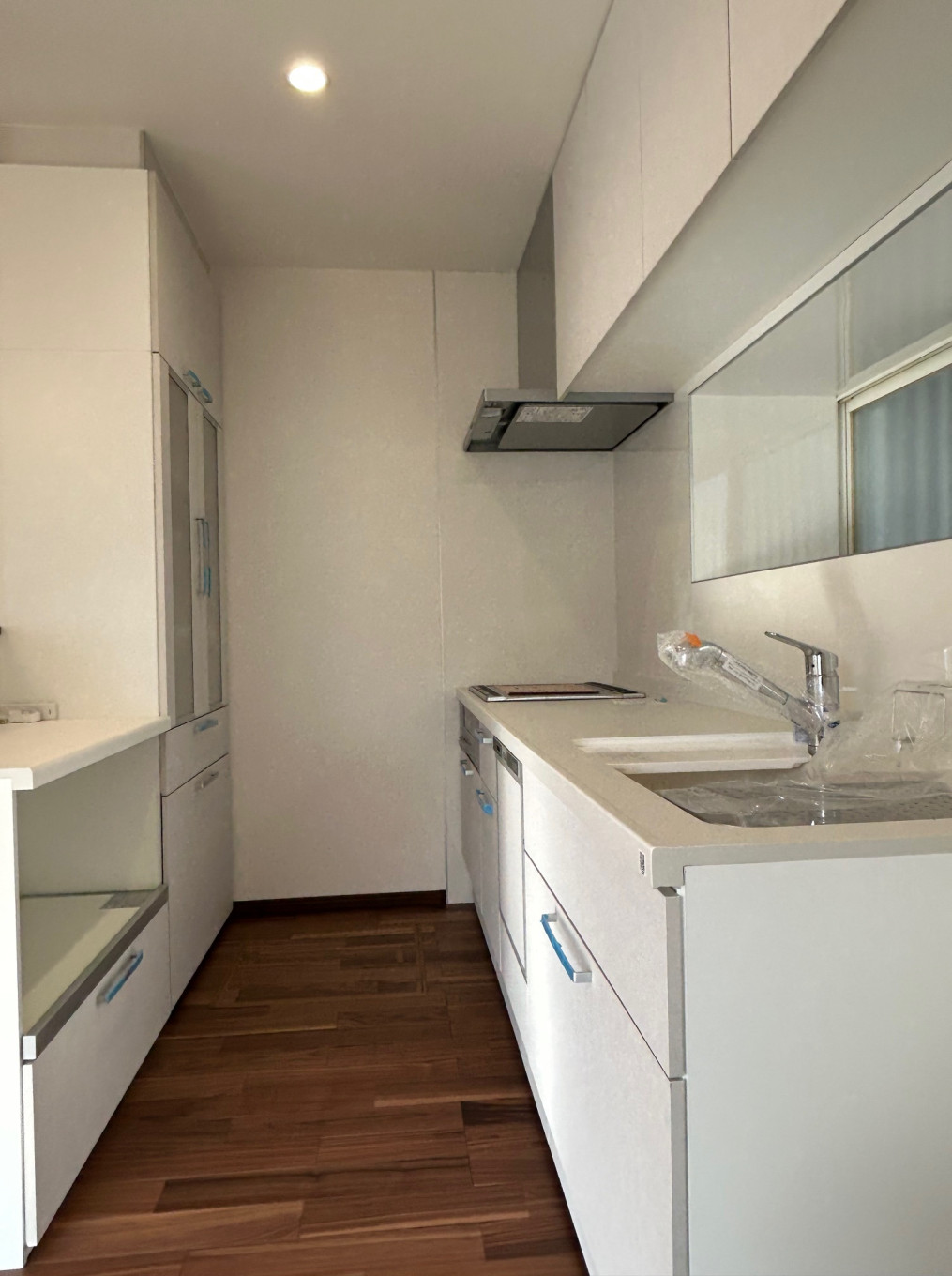 クロス貼替、CF貼替、断熱材入替、カップボード新設、勝手口交換、フローリング貼替(2階のみ上張り)